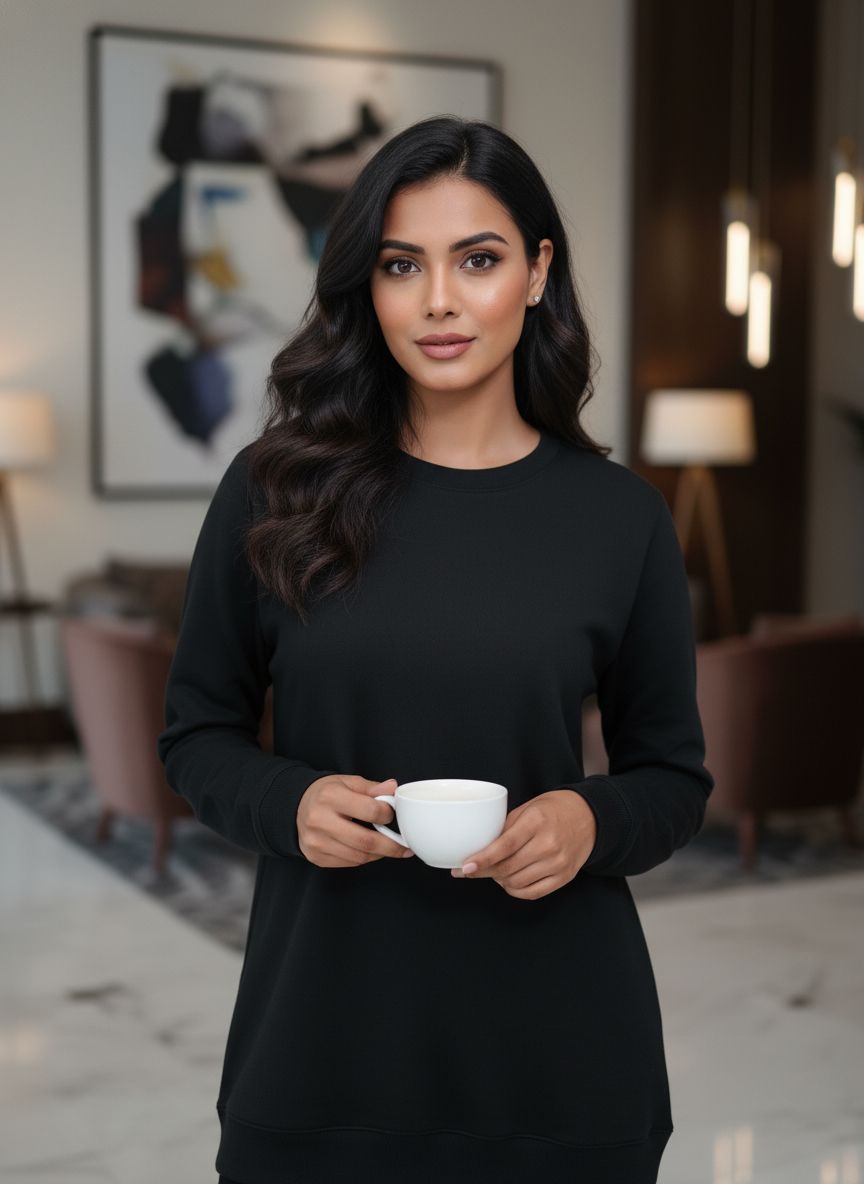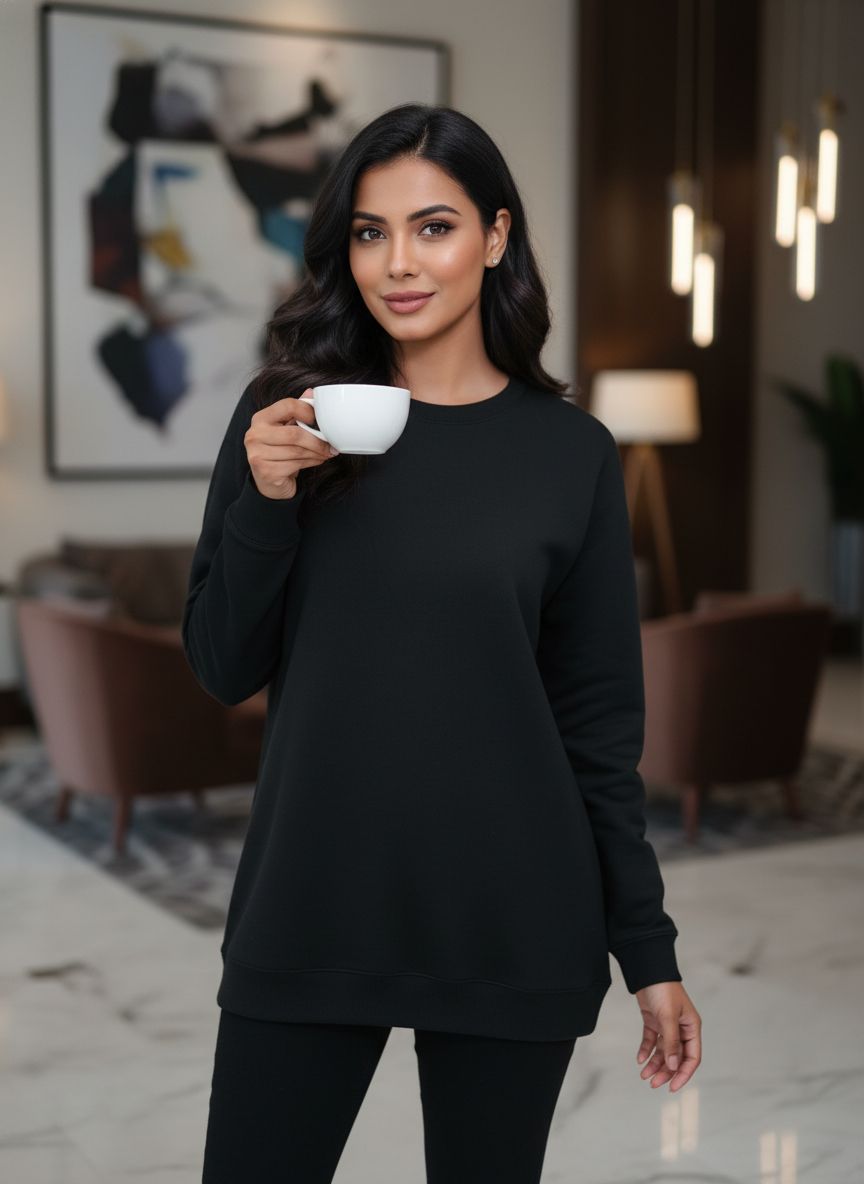Stay warm, stylish, and effortlessly chic with our Plain Black Women’s Sweatshirt. Designed with a sleek minimal aesthetic, this sweatshirt is perfect for women who love clean, versatile fashion. The refined jet-black tone adds a touch of sophistication, making it ideal for coffee dates, casual outings, work-from-home moments, or cozy evenings indoors.