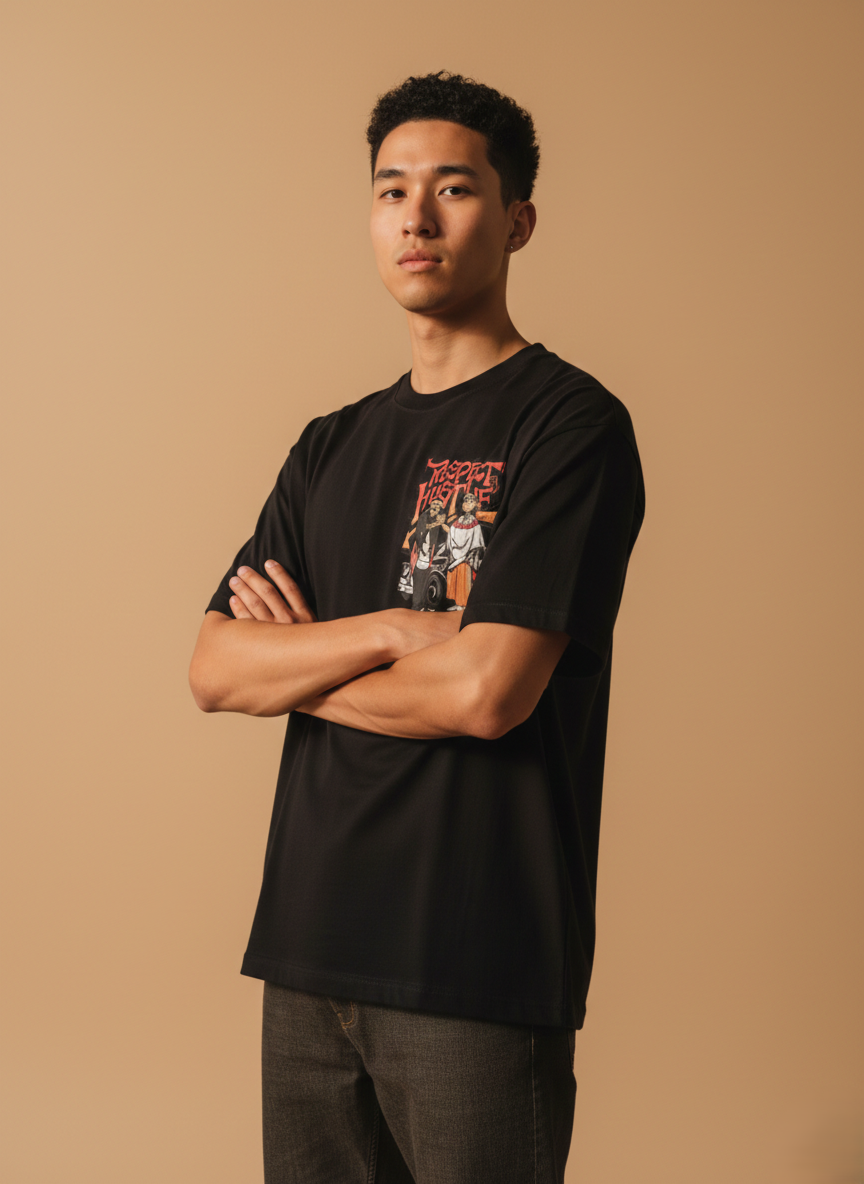 Easy to style and endlessly versatile, this T-shirt pairs perfectly with denim, cargos, or layered under a jacket for a complete streetwear fit. Whether you’re exploring the city, hanging out with friends, or expressing your love for urban art and culture, this tee fits right in. More than just a wardrobe essential, it’s a statement of confidence, creativity, and respect for street-style legends.